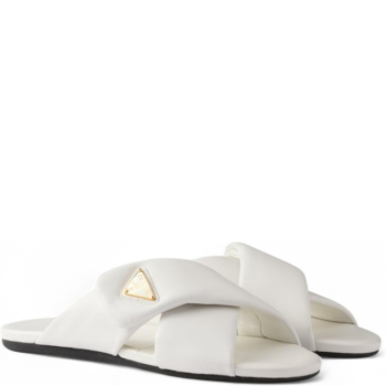 PRADA WHITE PADDED LEATHER SLIDES $319.00Select options