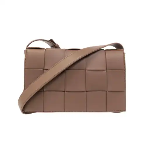 BOTTEGA VENETA BROWN CASSETTE INTRECCIATO LEATHER CROSS-BODY BAG