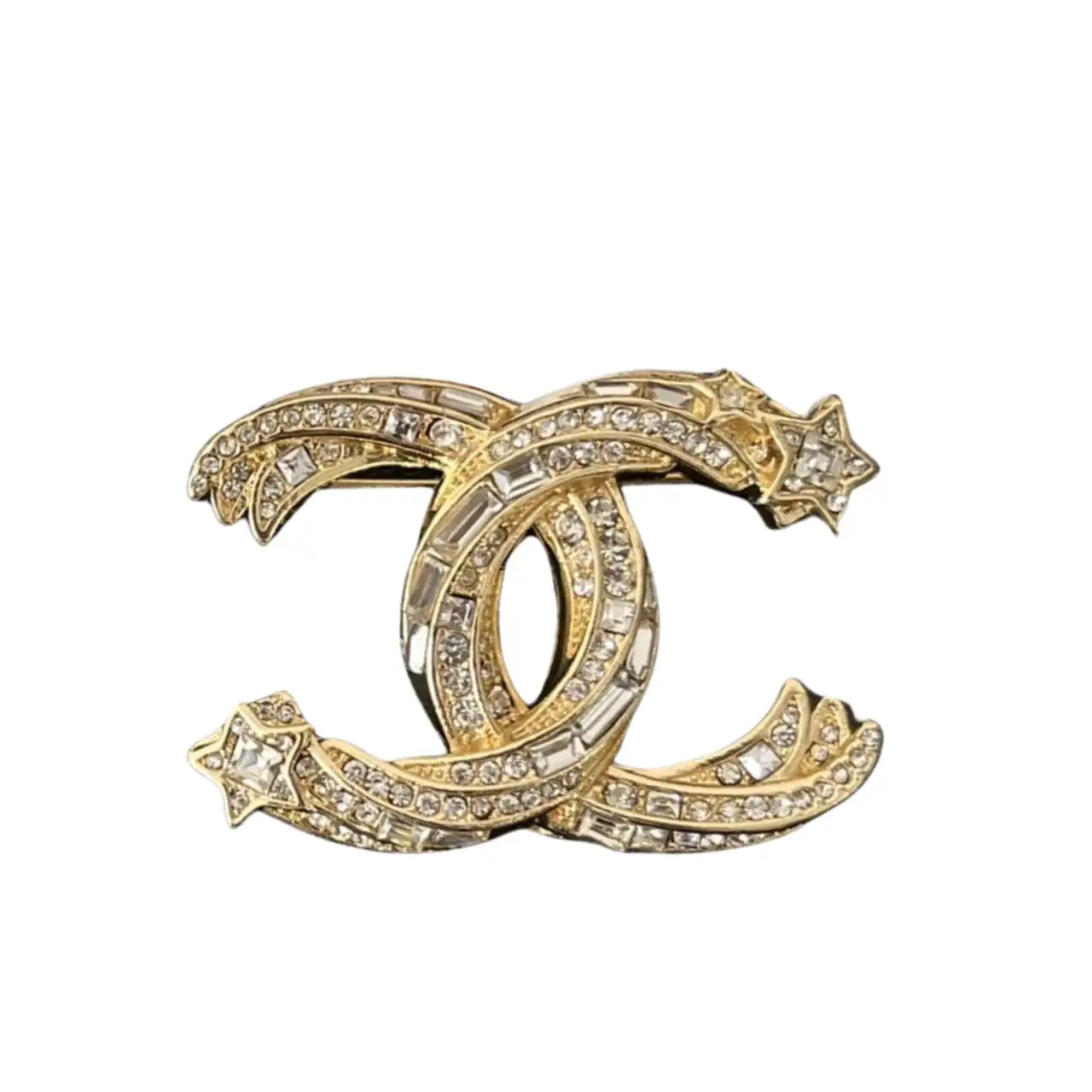 CHANEL BROOCH GOLD WITH STONES ATTACHED AND TWO STARS