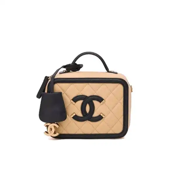CHANEL CAVIAR QUILTED SMALL CC FILIGREE VANITY CASE BEIGE 17CM