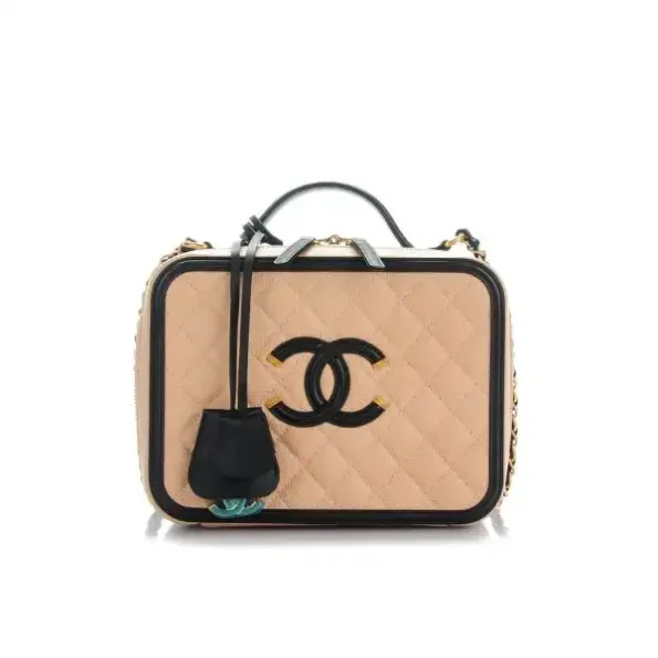 CHANEL CAVIAR QUILTED SMALL CC FILIGREE VANITY CASE BEIGE 21CM