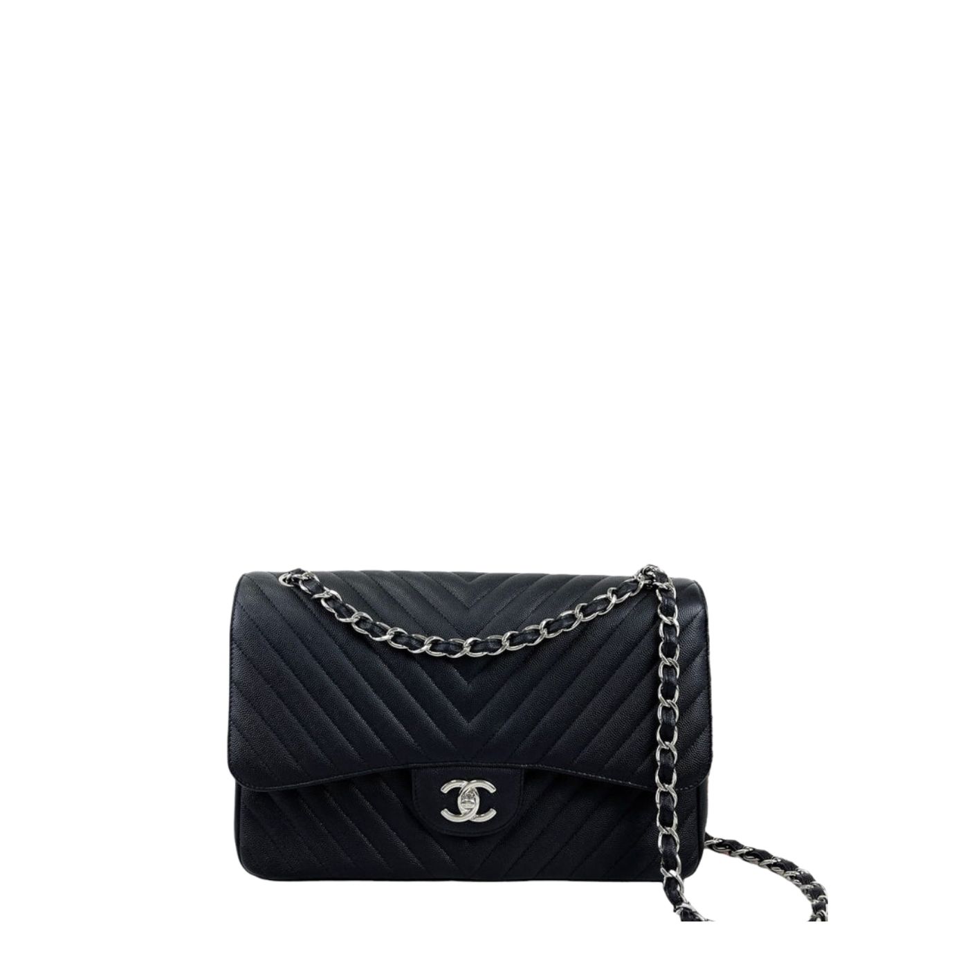 CHANEL’S CHEVRONN CLASSIC HANDBAG SILVER HARDWARE BLACK