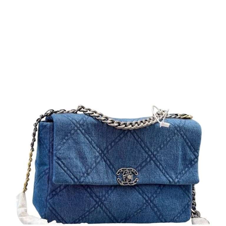 CHANEL 19 HANDBAG DENIM BLUE FOR WOMEN 10.1IN/26CM
