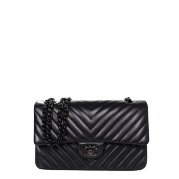 CHANEL CHEVRON CLASSIC HANDBAG BLACK HARDWARE BLACK 10.2IN/26CM