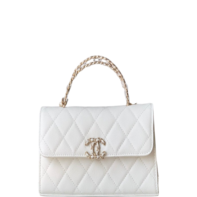 CHANEL FLAP PHONE HOLDER WITH CHAIN WHITE 18CM/7.1IN