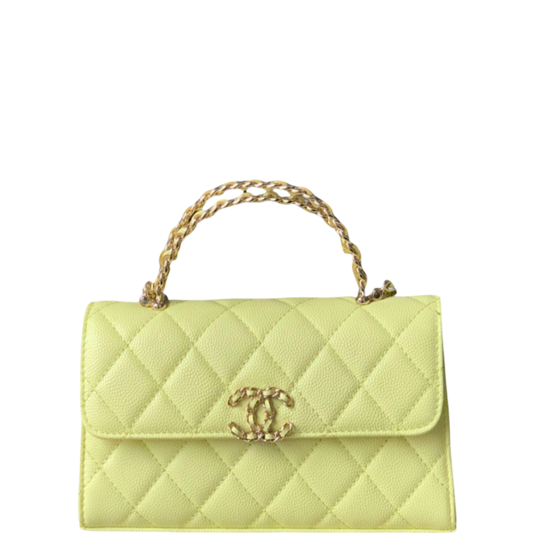 CHANEL FLAP PHONE HOLDER WITH CHAIN YELLOW 18CM/7.1IN
