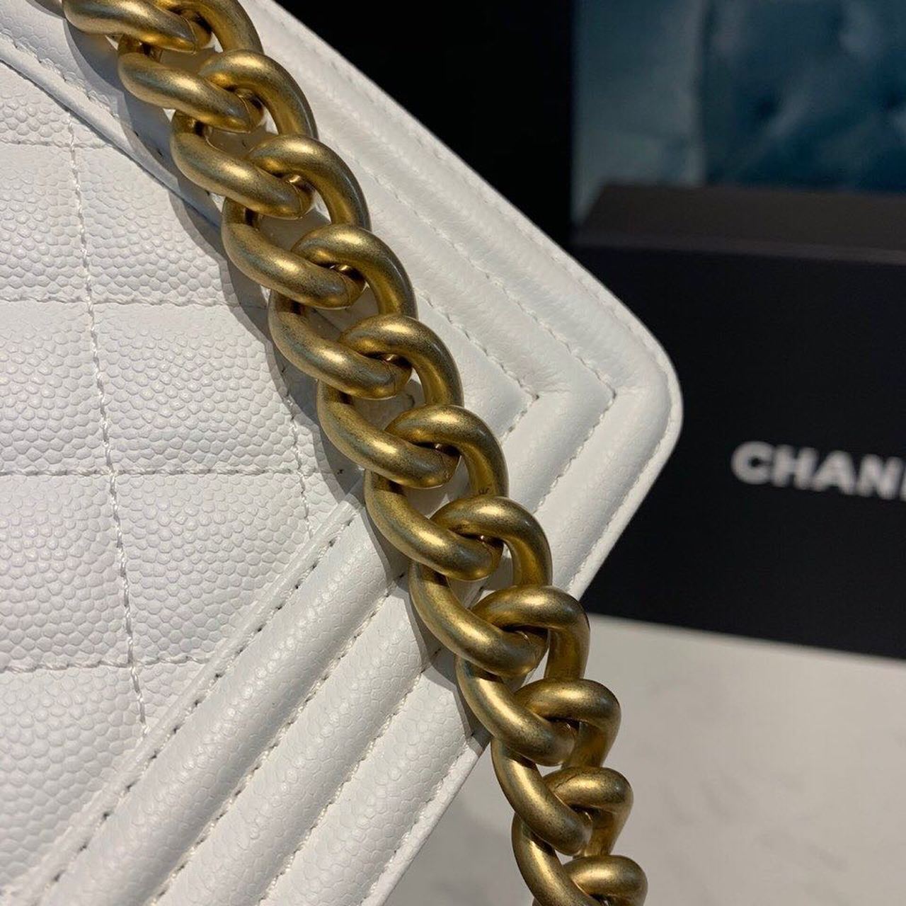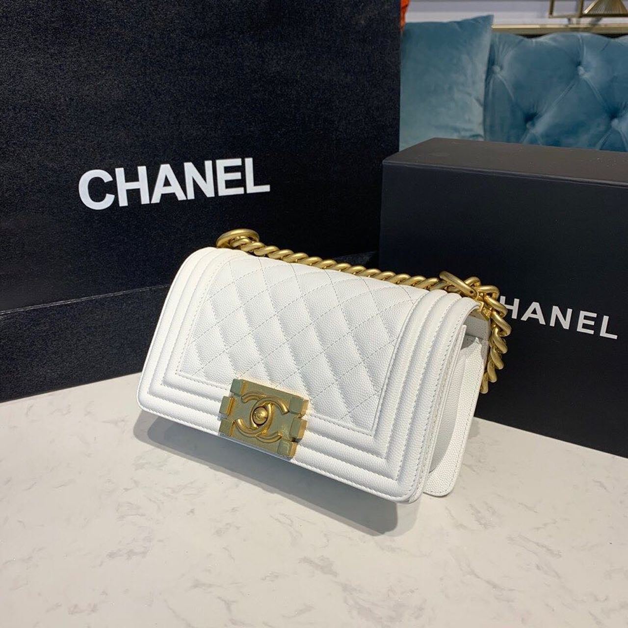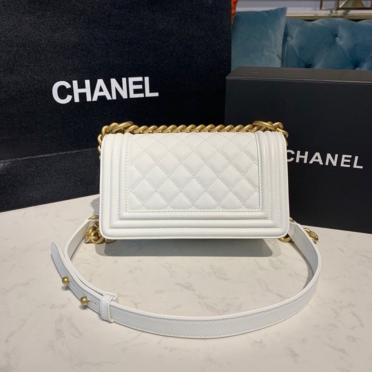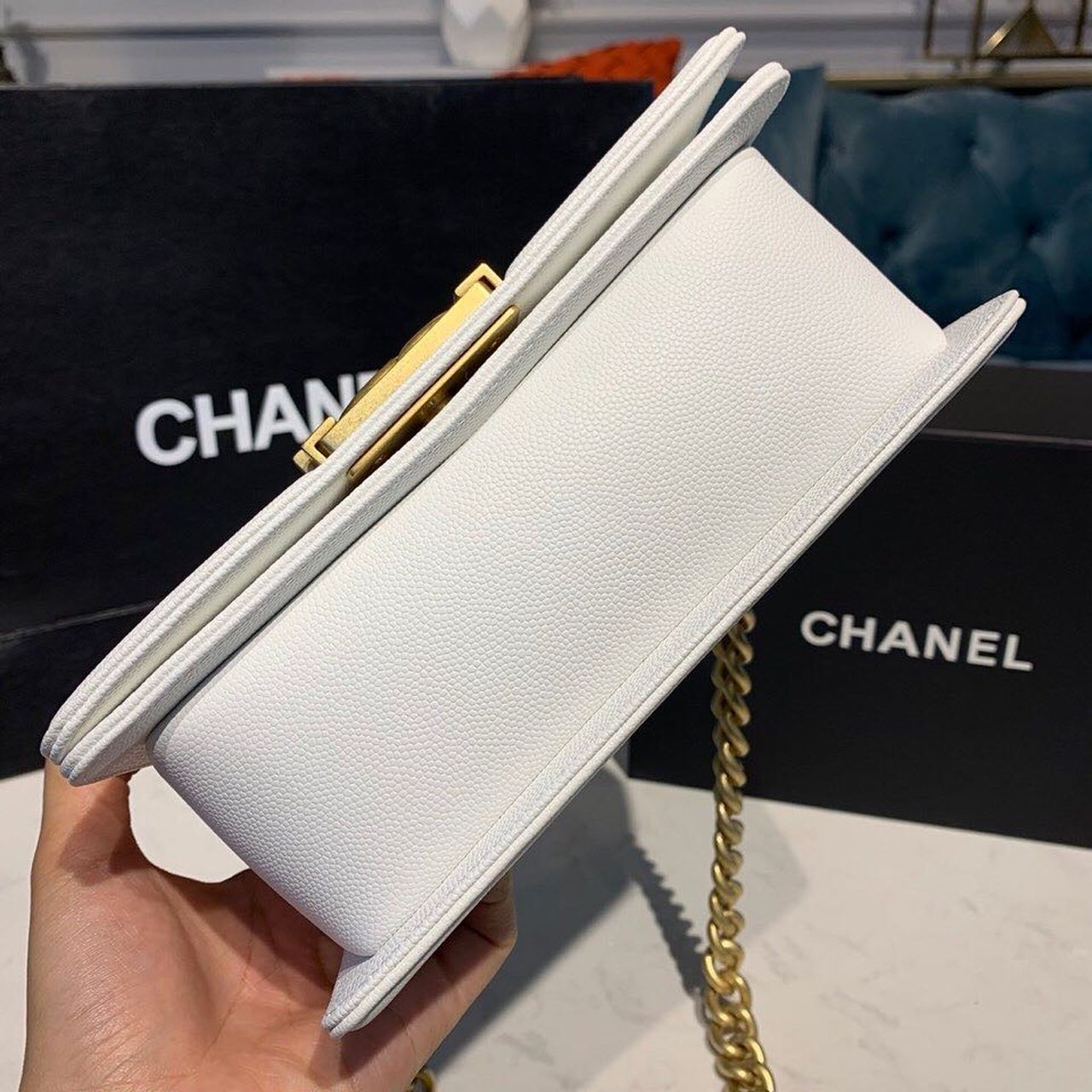CHANEL SMALL BOY HANDBAG WHITE