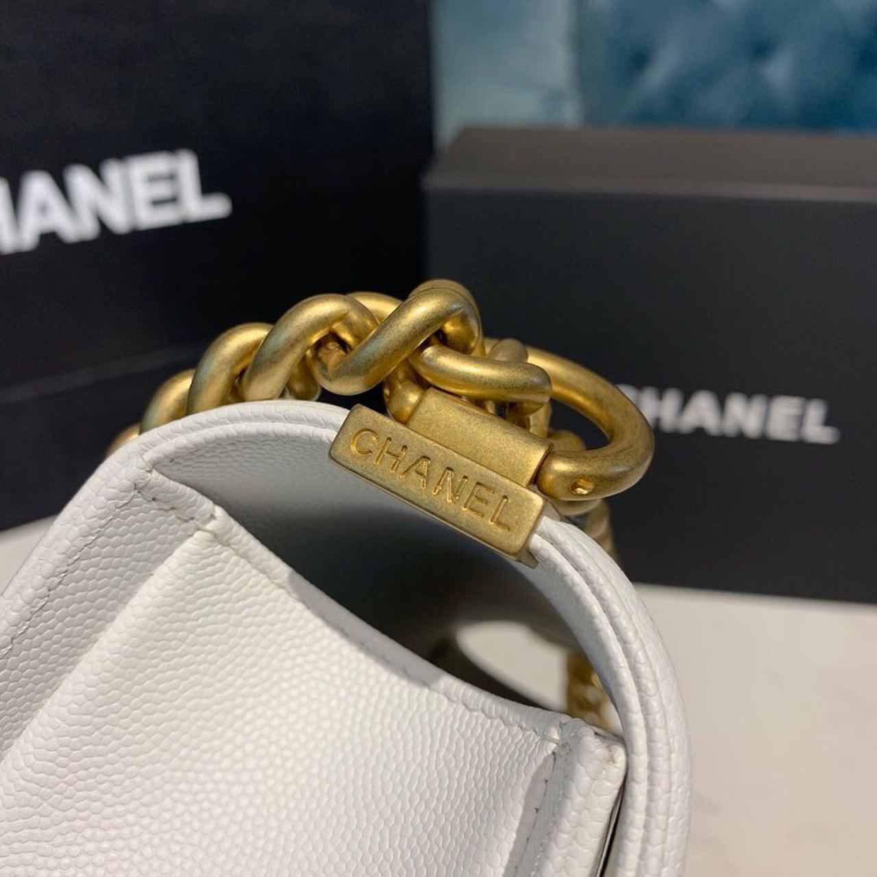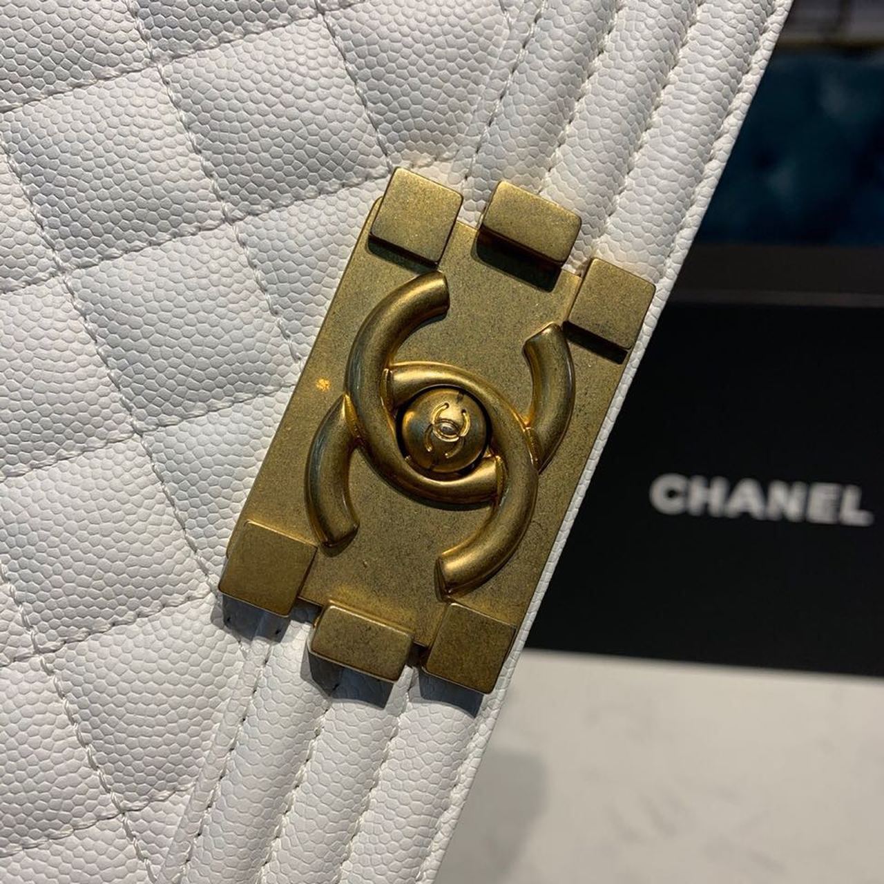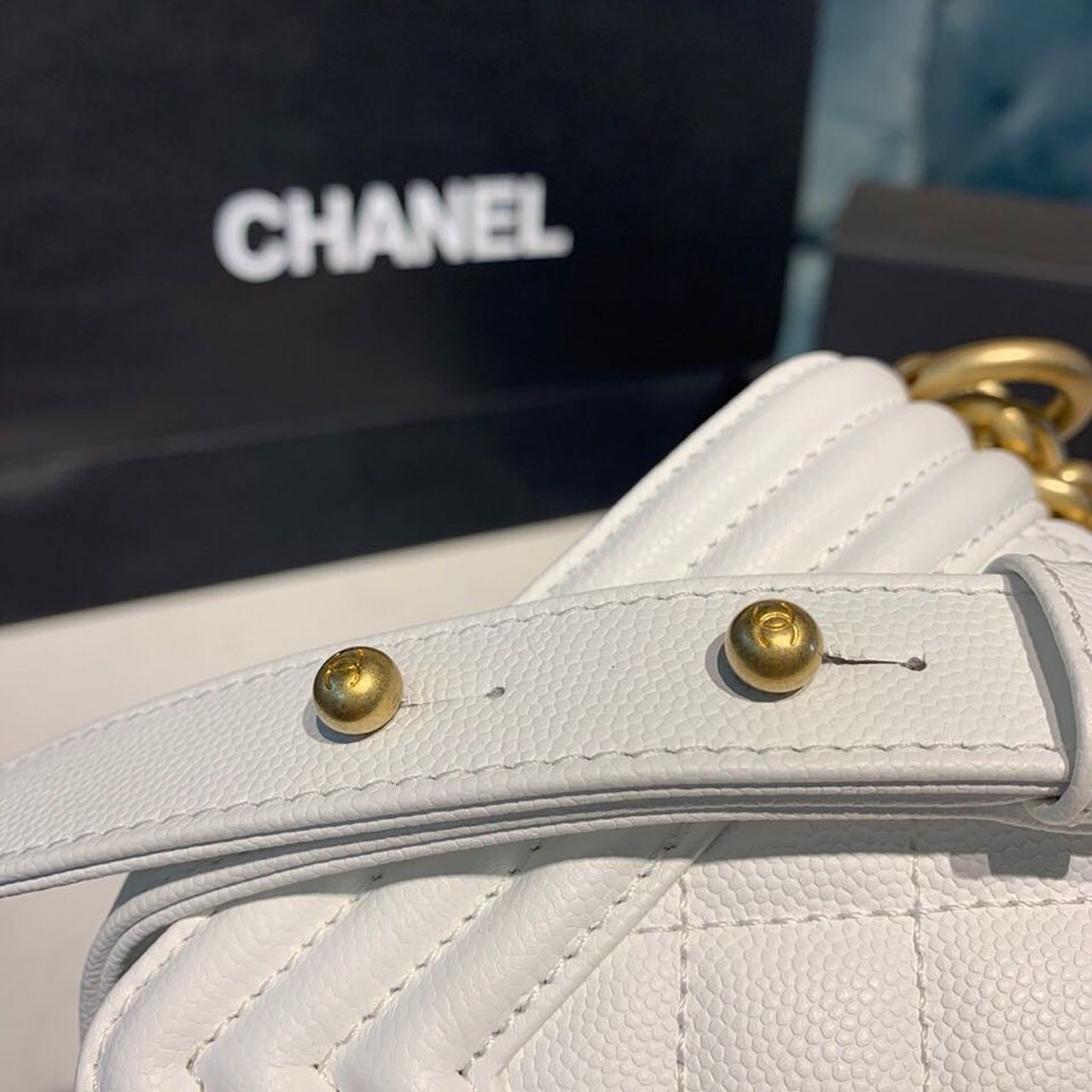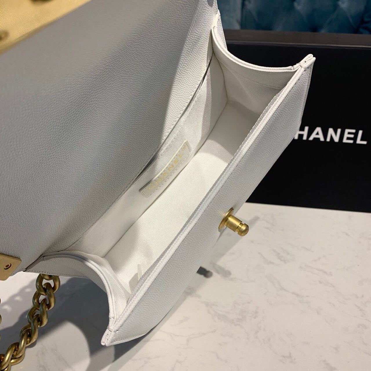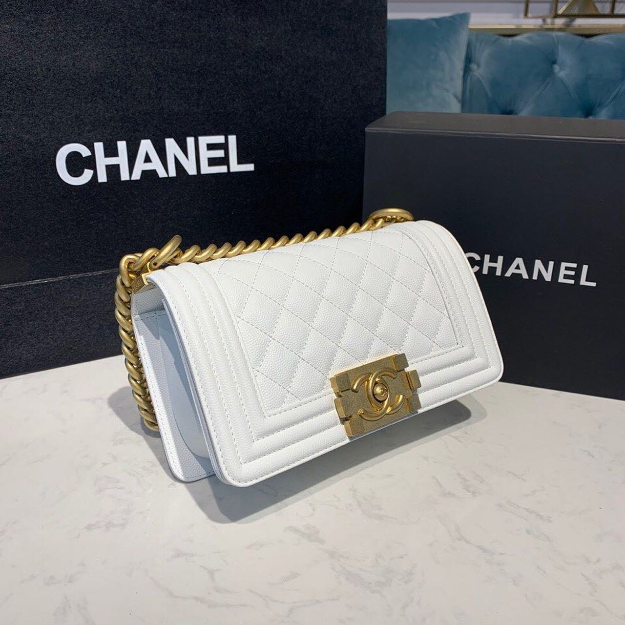 CHANEL SMALL BOY HANDBAG WHITE