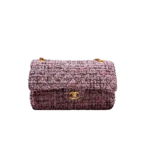 CHANEL TWEED QUILTED FLAP PINK AND BLACK 25CM