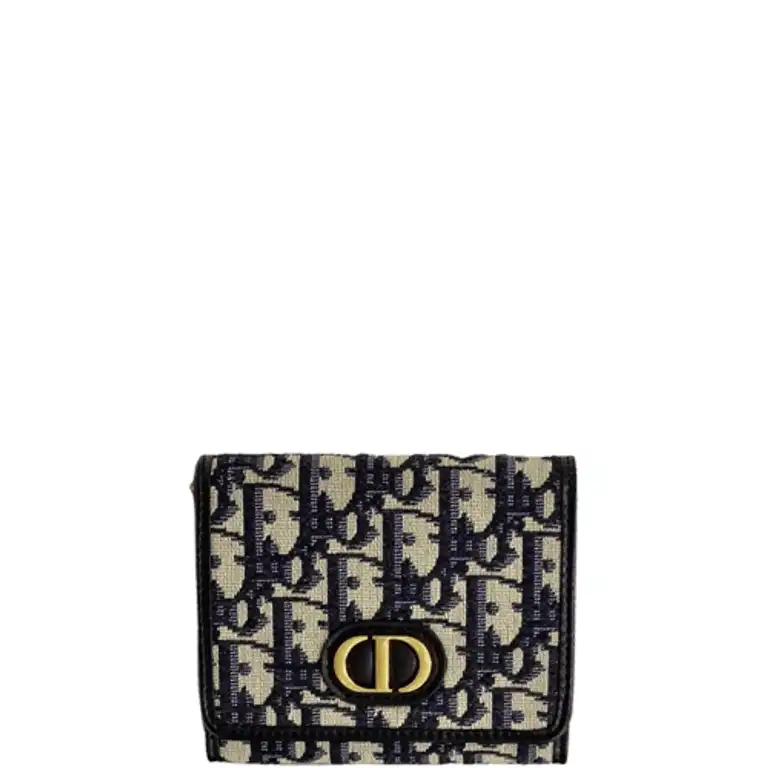 DIOR 30 MONTAIGNE LOTUS WALLET OBLIQUE CANVAS COMPACT BLACK AND BEIGE 11CM