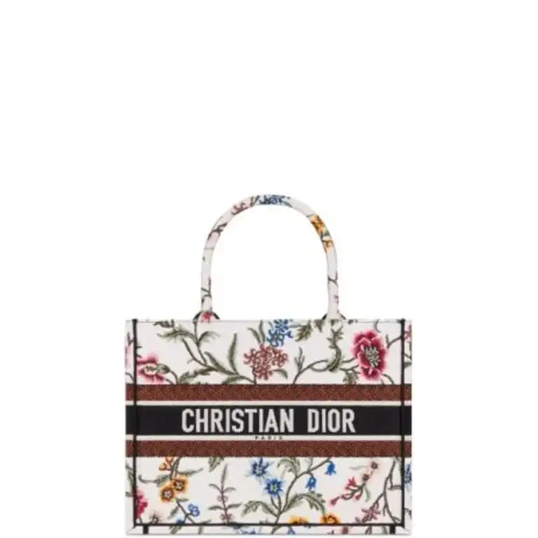 DIOR 35CM MEDIUM BOOK TOTE WHITE MULTICOLOR PETITES FLEURS EMBROIDERY