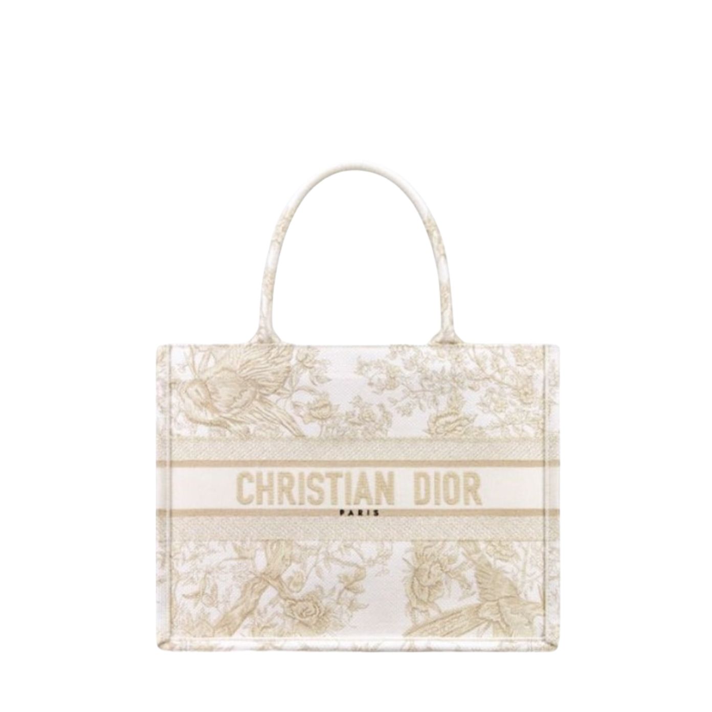 DIOR’S 41CM BOOK LARGE TOTE BAG WINTER GARDEN EMBROIDERY IN GOLD METALLIC THREADS