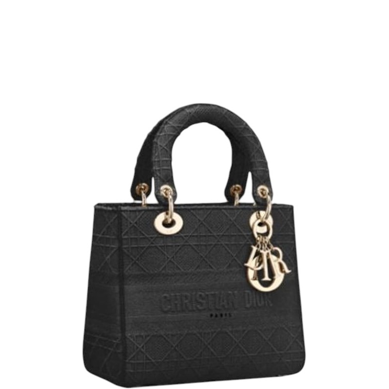DIORR’S 24CM LADY D LITE BAG BLACK CANNAGE EMBROIDERY