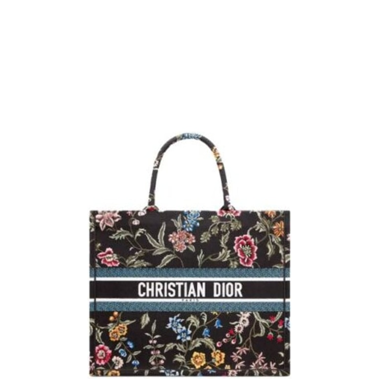 DIOR LARGE EMBROIDERY BOOK TOTE BLACK MULTICOLOR CD PETITES FLEURS 41CM