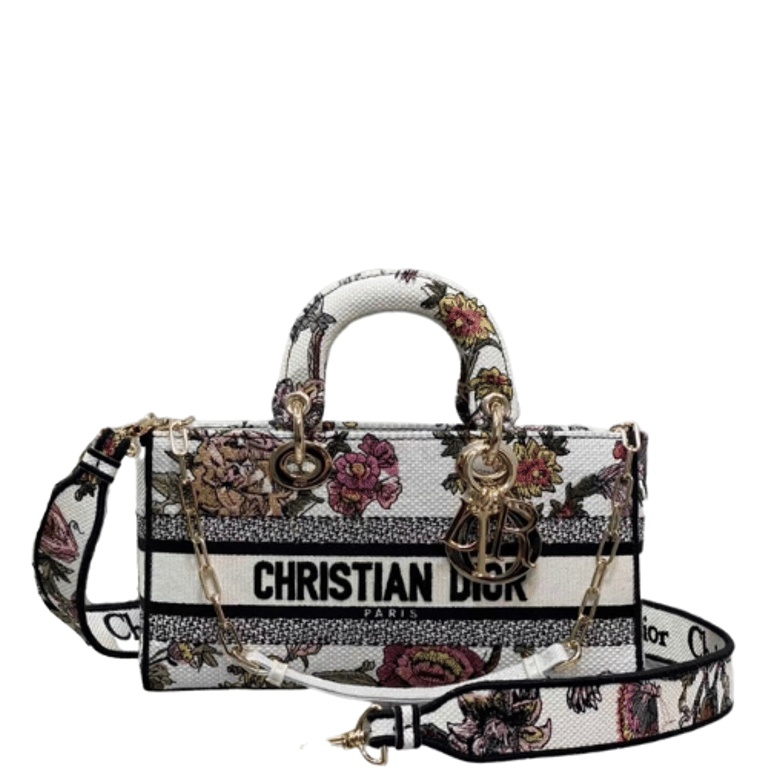 - Equipped with a wide, reversible and removable embroidered shoulder strap, the medium Lady D-Lite bag can be carried by hand or worn crossbody.