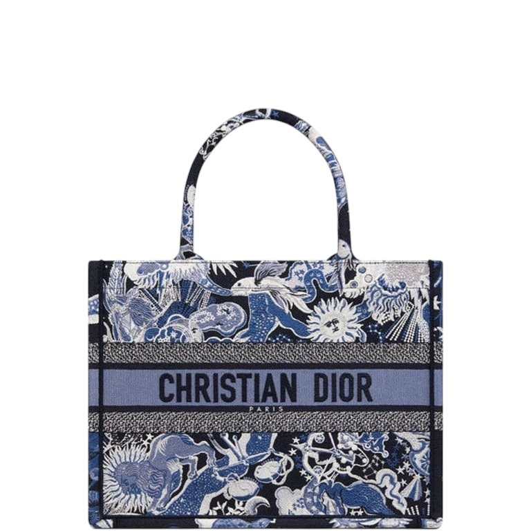 DIOR MEDIUM BOOK TOTE BLUE MULTICOLOR ZODIAC FANTASTICO EMBROIDERY 36CM