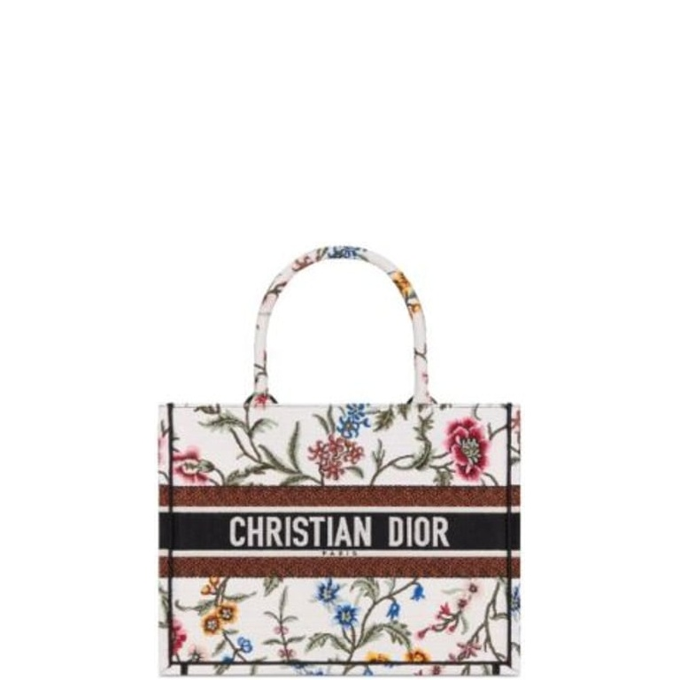 DIOR 35CM MEDIUM BOOK TOTE WHITE MULTICOLOR PETITES FLEURS EMBROIDERY