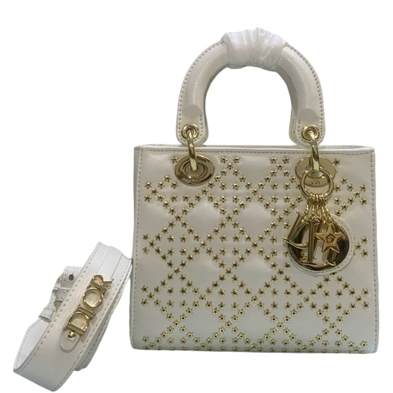 DIOR MINI LADY DIOR LUCKY STAR BAG WHITE 17CM
