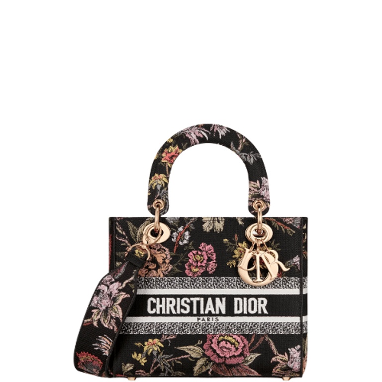 - Equipped with a wide, reversible and removable embroidered shoulder strap, the medium Lady D-Lite bag can be carried by hand or worn crossbody.