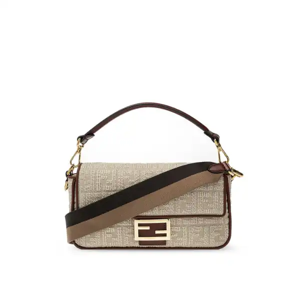 FENDI BAGUETTE BEIGE WITH WINE RED LEATHER 27CM