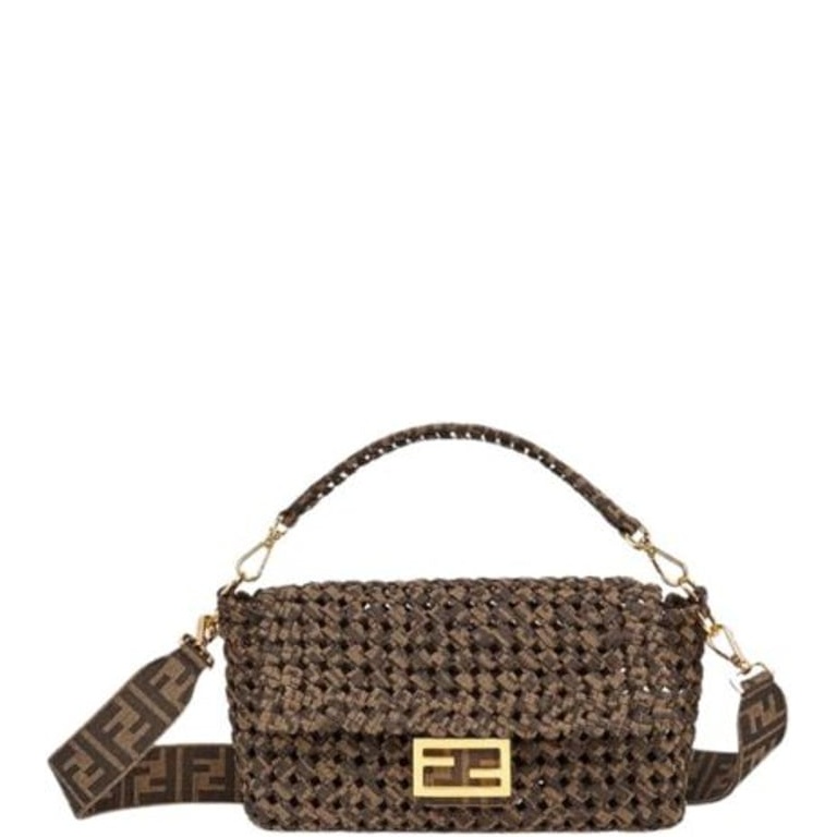 FENDI BAGUETTE JACQUARD FABRIC INTERLACE BAG BROWN 25CM 8BR600ABMRF0A6E