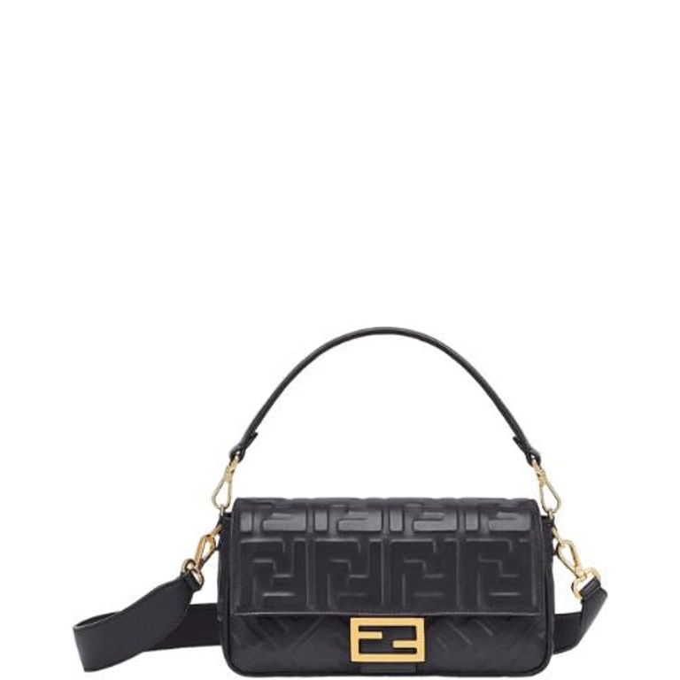 FENDI BAGUETTE LEATHER BLACK NAPPA BAG 27CM