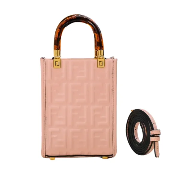 FENDI MINI SUNSHINE SHOPPER PINK LEATHER BAG WITH FF MOTIF 18CM