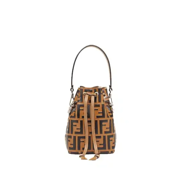 FENDI SMALL MON TRESOR BUCKET BAG BROWN AND BLACK FF 18CM 8BS010A659F13VK