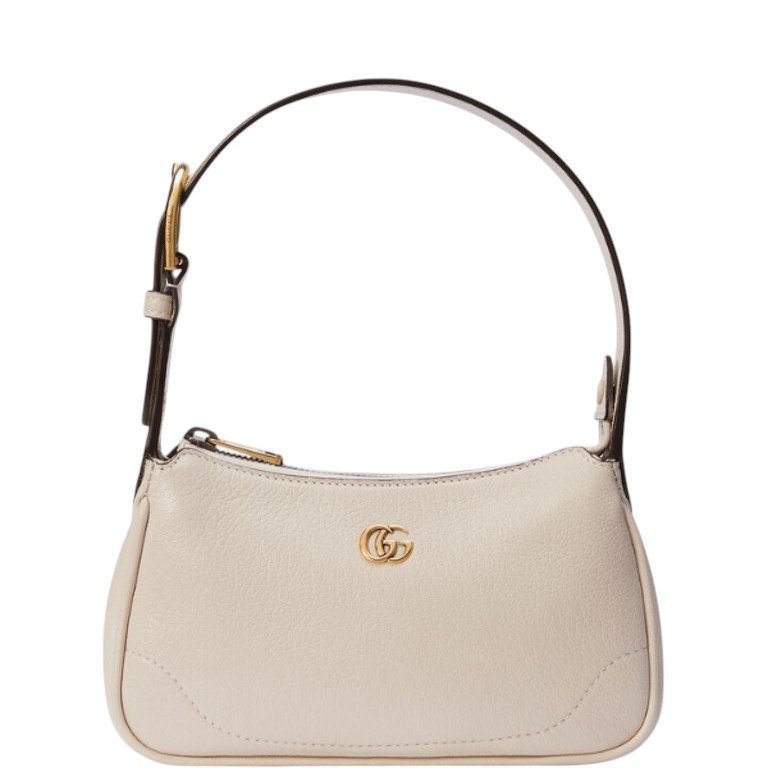 - A nod to styles popular during the late 1990s and early 2000s, the Aphrodite line welcomes a new shape with this small shoulder bag, which pairs the essential design with pop colors and the unmistakable Double G hardware, for a sleek yet unexpected look. Here, it’s presented in a soft light pink leather with a gold-toned zip closure.