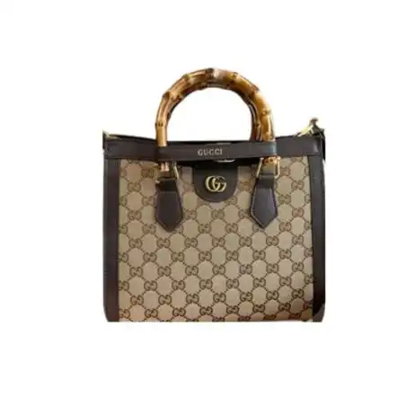 GUCCI DIANA CANVAS BROWN JUMBO GG MINI TOTE BAG CAMEL AND EBONY JUMBO GG