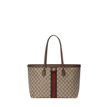GUCCI BEIGE EBONY OPHIDIA GG MEDIUM TOTE BAG