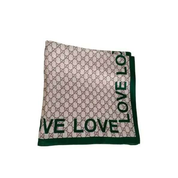 GUCCI WOMEN’S NATURAL GG LOVE SILK SCARF GREEN