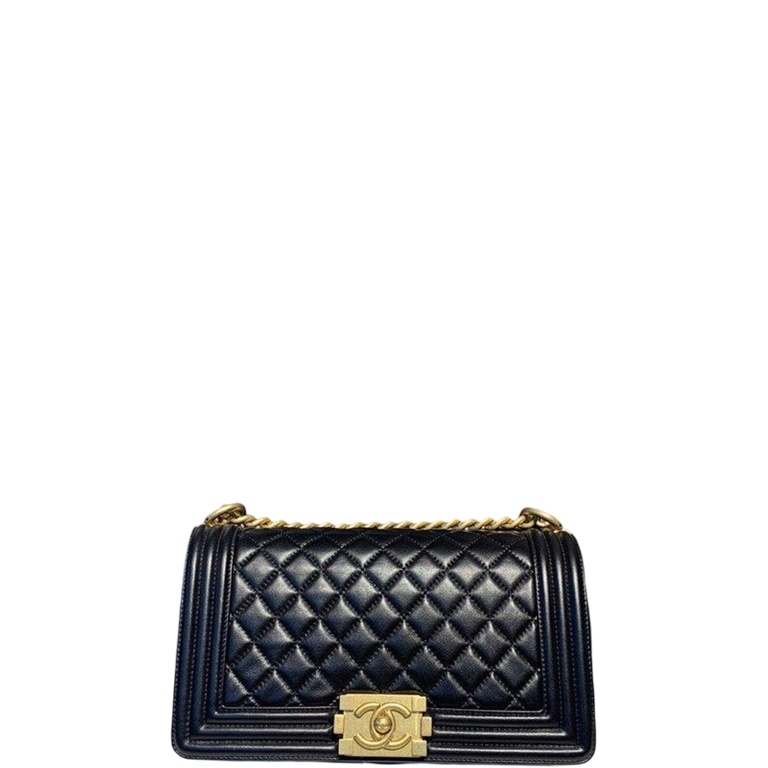 CHANEL BOY HANDBAG GOLD TONED HARDWARE BLACK 9.8IN/25CM