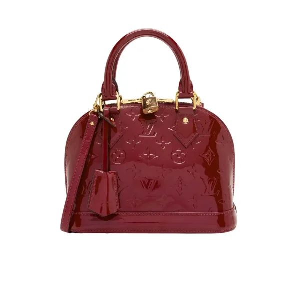 LOUIS VUITTON ALMA BB MONOGRAM VERNIS LEATHER DARK RED 23CM