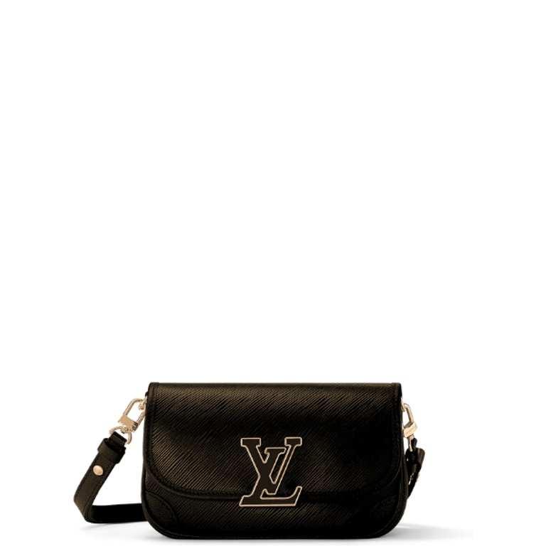 - Front flap with decorative LV resin ornament, magnetic closure
