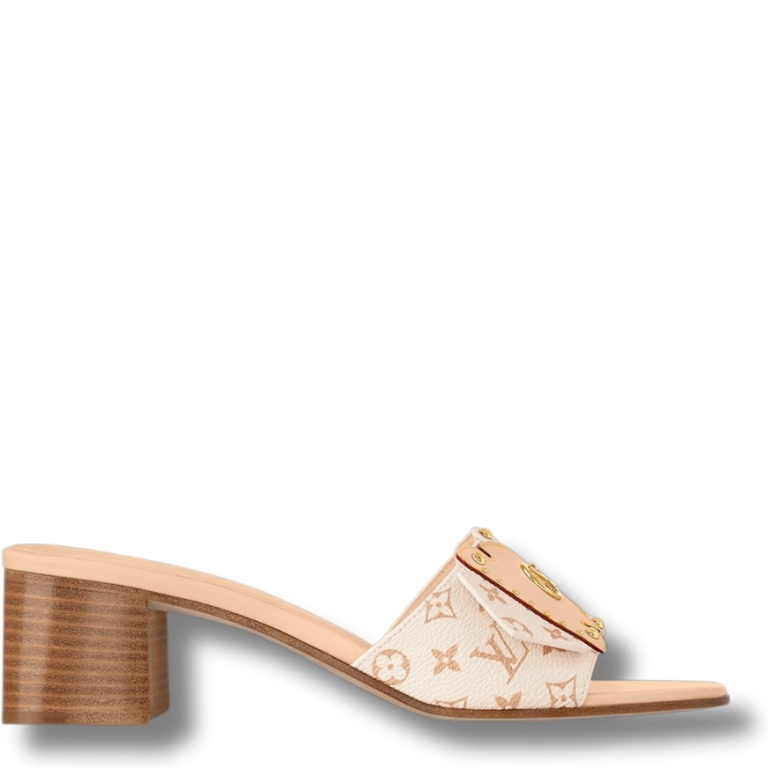 • Monogram Dune canvas complements the refined design of the LV Frame mule. Its key feature is the detail on the strap.
