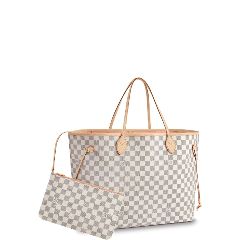 LOUIS VUITTON 40CM NEVERFULL GM DAMIER AZUR AND LIGHT PINK N41604