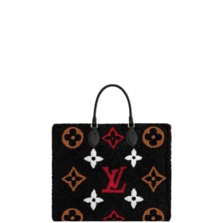 LOUIS VUITTON BLACK AND RED 40CM ONTHEGO MONOGRAM TEDDY FLEECE