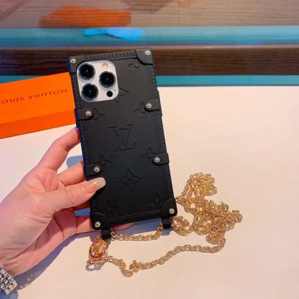 LOUIS VUITTON PATTENRED BLACK CHAIN RIVET PHONE CASE