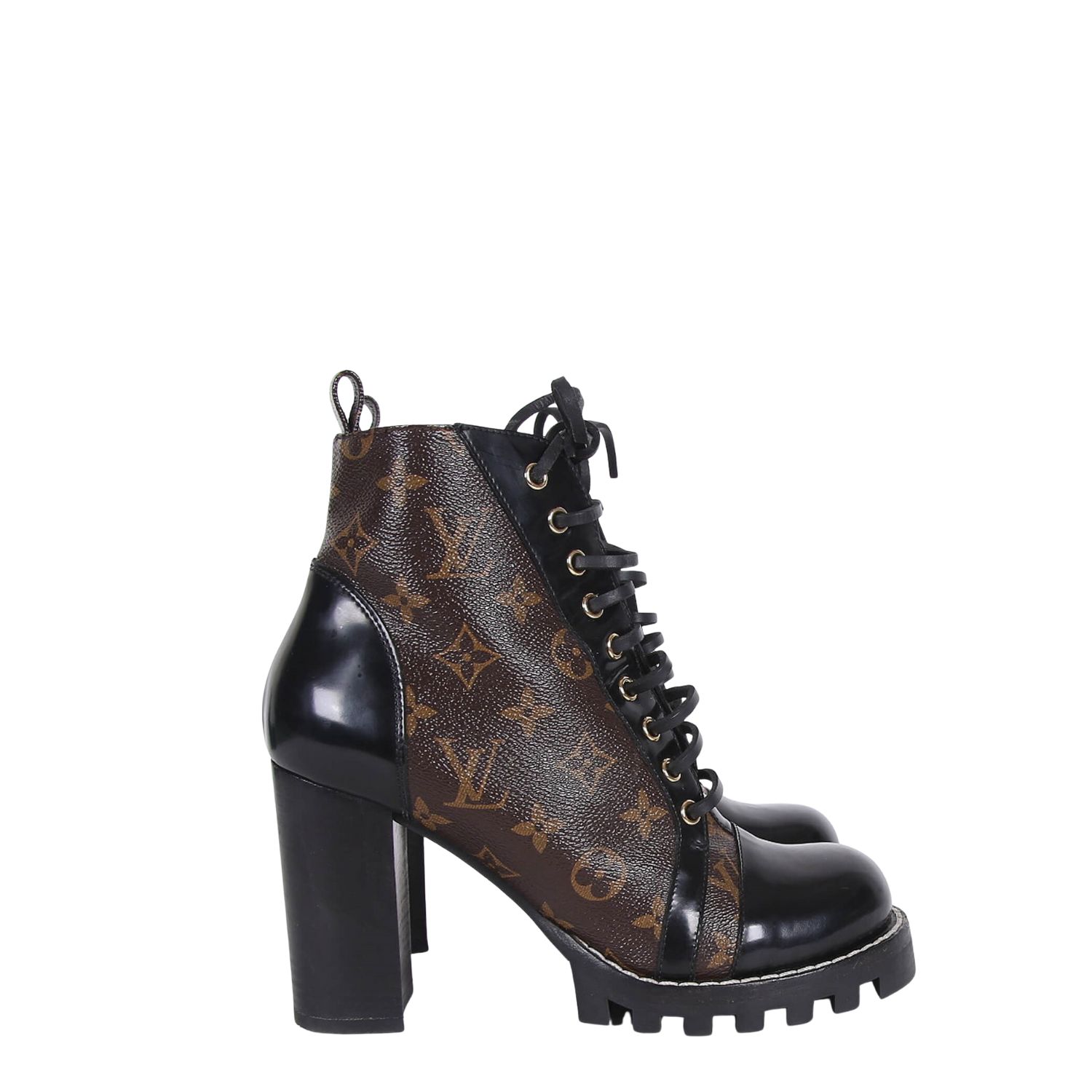 The Star Trail ankle boot, one of Louis Vuitton’s most instantly recognizable designs, is interpreted in patent Monogram material for a truly iconic look.