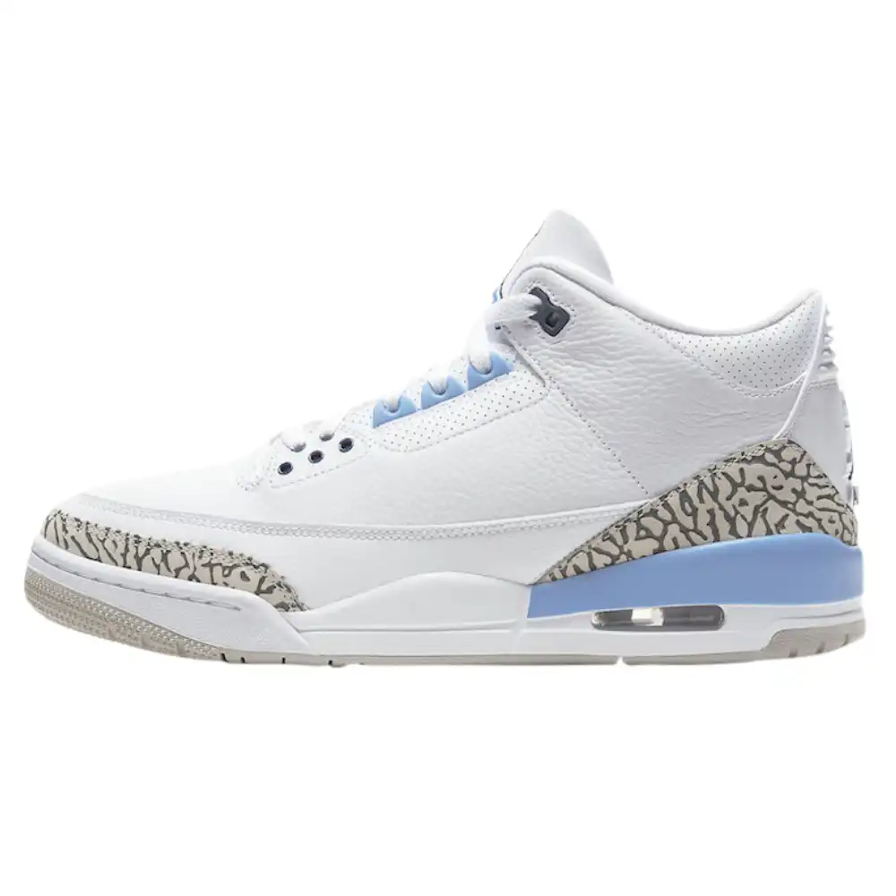 - Done in a White/Valor Blue-Tech Grey color scheme, this iteration of the Air Jordan 3 comes dressed in a White leather upper two shades of Blue noted on the branding, eyelets and part of the midsole.