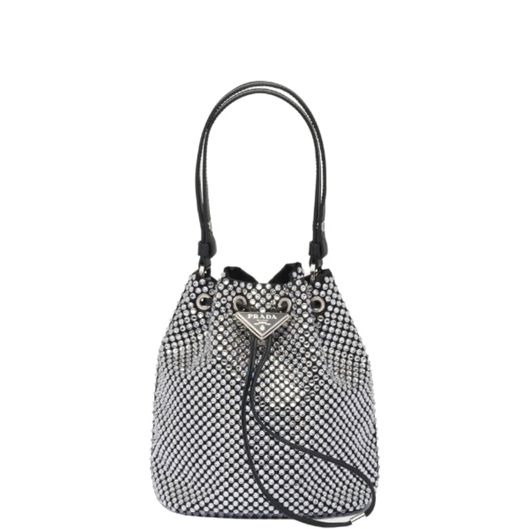 PRADA EMBELLISHED SATIN POUCH CRYSTAL COLOR 18CM