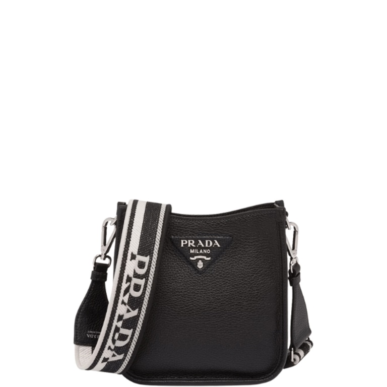 PRADA LEATHER MINI SHOULDER BAG BLACK 20CM