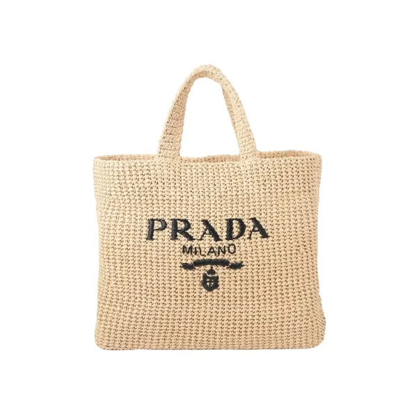 PRADA BEIGE RAFFIA TOTE BAG 38 CM/ 15 IN