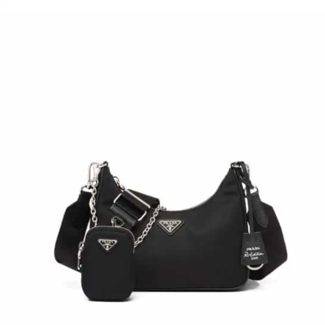 PRADA RE EDITION 2005 RE NYLON BAG BLACK 26CM