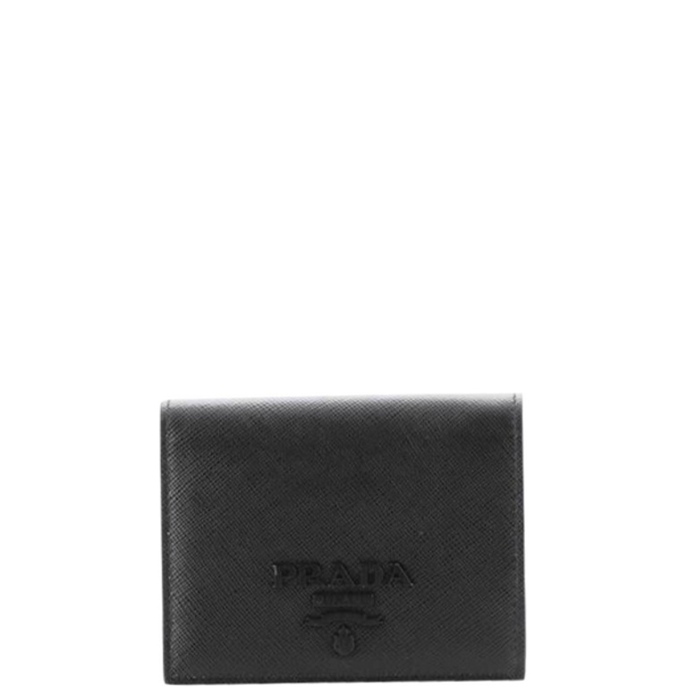 PRADA SAFFIANO MONOCHROME FLAP SMALL WALLET FULL BLACK 10CM 1MV204 QWA F0002