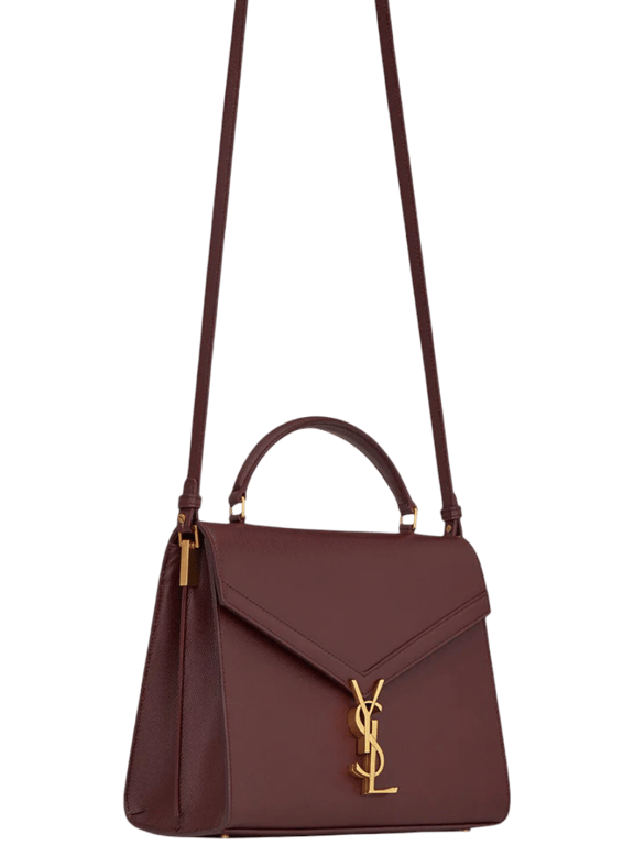 SAINT LAURENT CASSANDRA MEDIUM TOP HANDLE IN GRAIN DE POUDRE EMBOSSED DARK PECAN 24CM