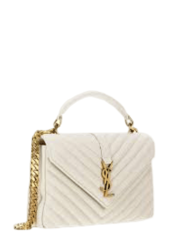 SAINT LAURENT COLLEGE MEDIUM CHAIN BAG IN QUILTED LEATHER WHITE 24CM