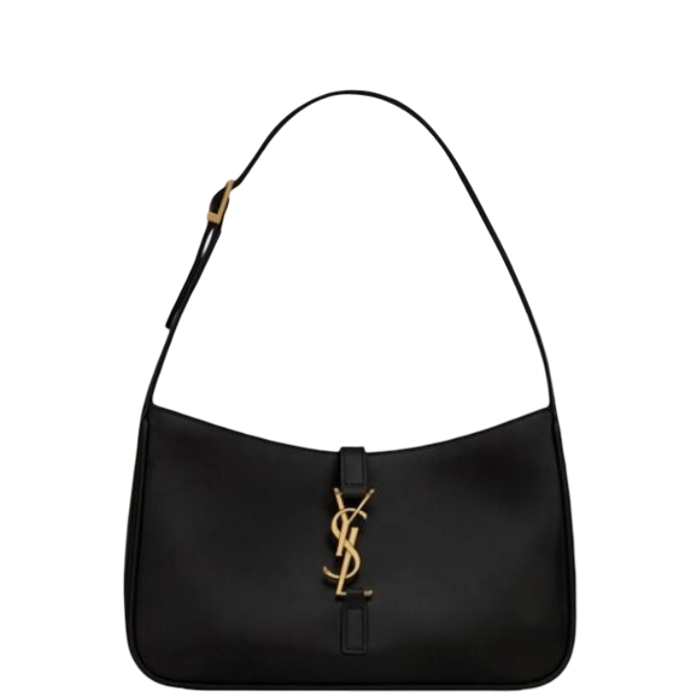 SAINT LAURENT LE 5 A 7 HOBO BAG IN SMOOTH LEATHER BLACK GOLD 23CM