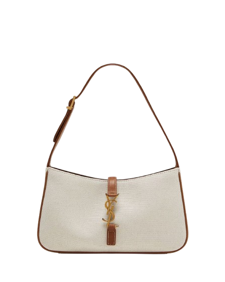 SAINT LAURENT LE 5 À 7 LINEN CANVAS HOBO BAG WHITE AND BROWN 25CM